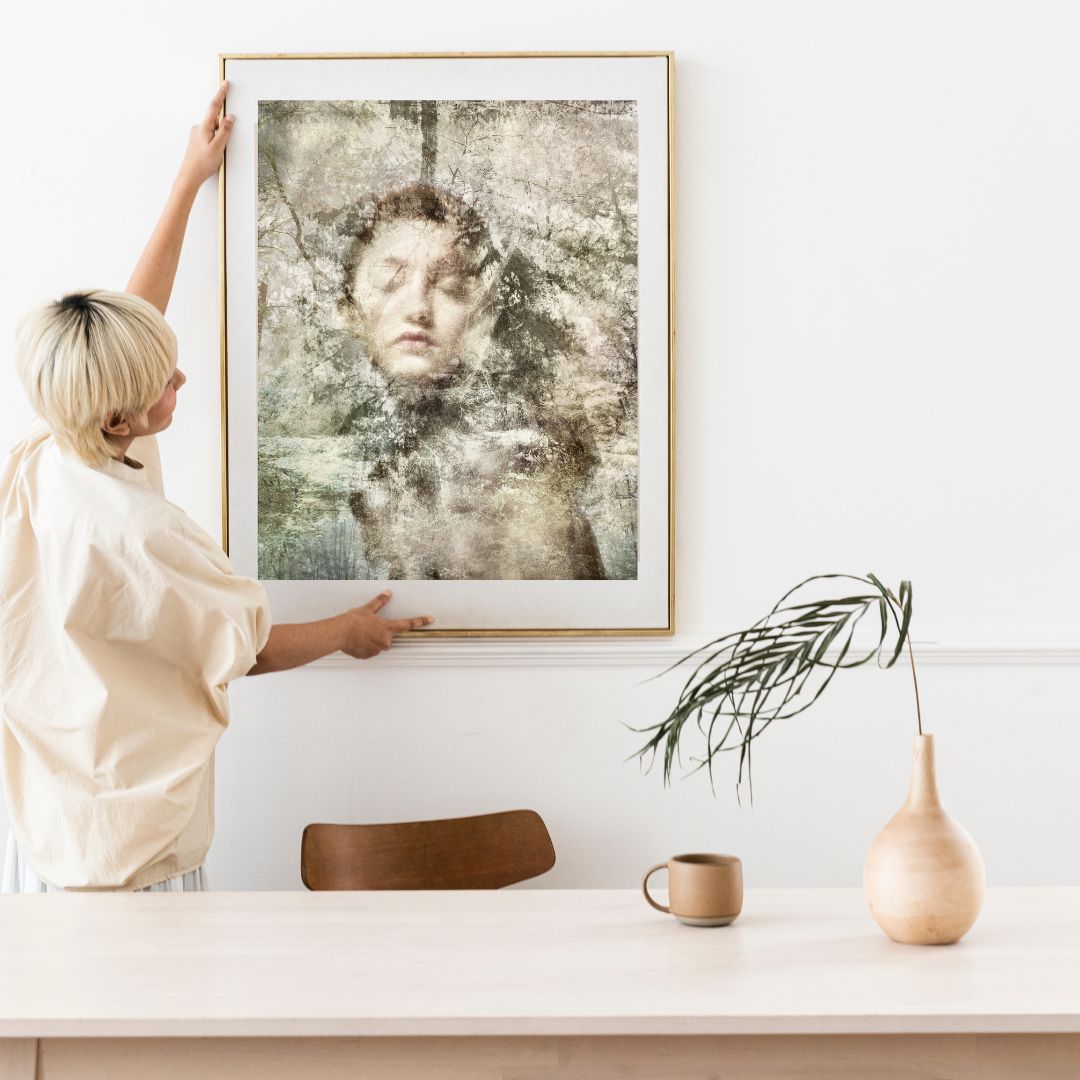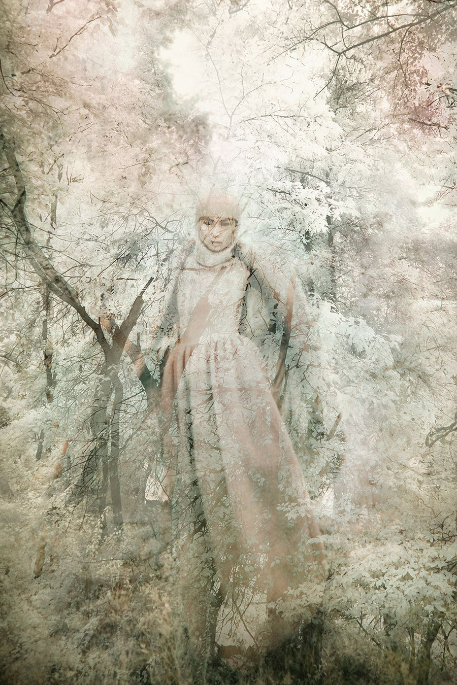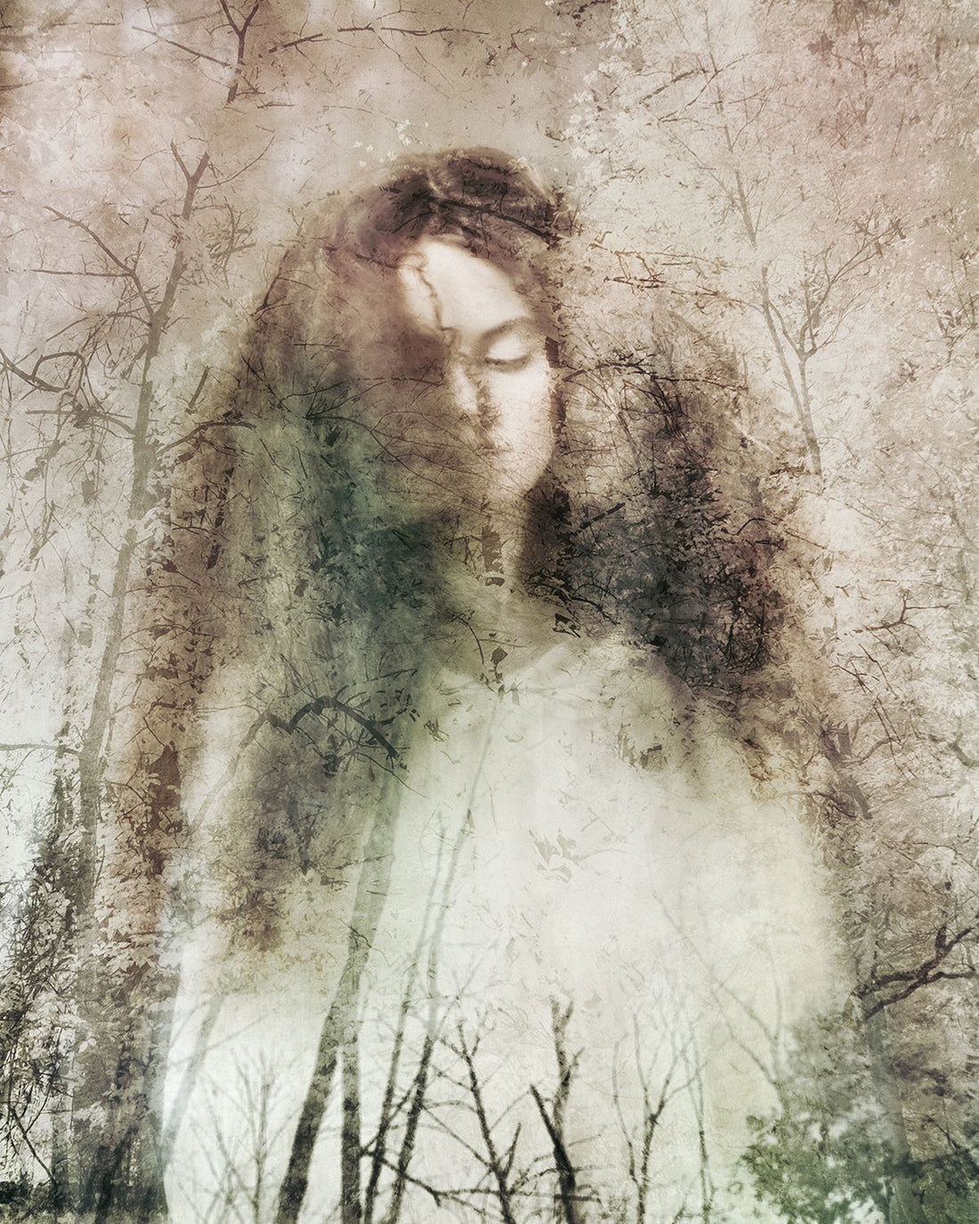 The images presented here are photographic reproductions of one-of-a-kind portrait and landscape artworks Helena creates in her art studio. For the original pieces, she uses various media and techniques, from shooting with an infrared camera to add a certain otherworldliness to her colors, to printing the different image layers on fragile rice paper before sealing them with encaustic.